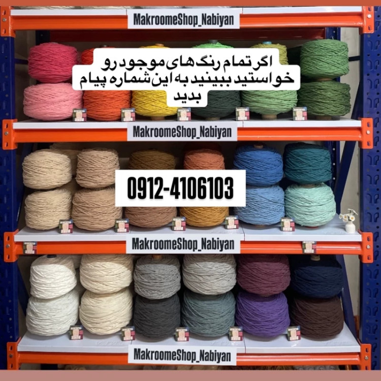 انواع نخ های مکرومه،رافیا و کنفی،فریم آینه،فریم باکس ها،فریم خام دستمال،فریم لوستر استوانه،فریم 3 طبقه، فریم کلاهی موجی و پهن،فریم آباژور،فریم نیم گرد، فریم اشکی،فریم خیمه،فریم دیوارکوب،فریم الماس،پایه آباژور کوزه ای، گرد و ساده، سرپیچ مخصوص فریم ها،چوب های بوم ریس و دیوارکوب،حلقه های ماندلا،همچنین حلقه،مهره چوبی و رنگی،آویز های خام ماه،ستاره،چشم و قلب ، همچنین قلاب و قیچی و شانه مکرومه بافی و چسب چوب موجود است.