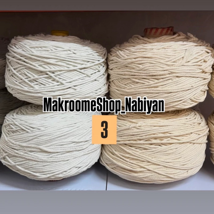 نخ مکرومه بافی سفید و شیری 3میل (1 کیلویی)