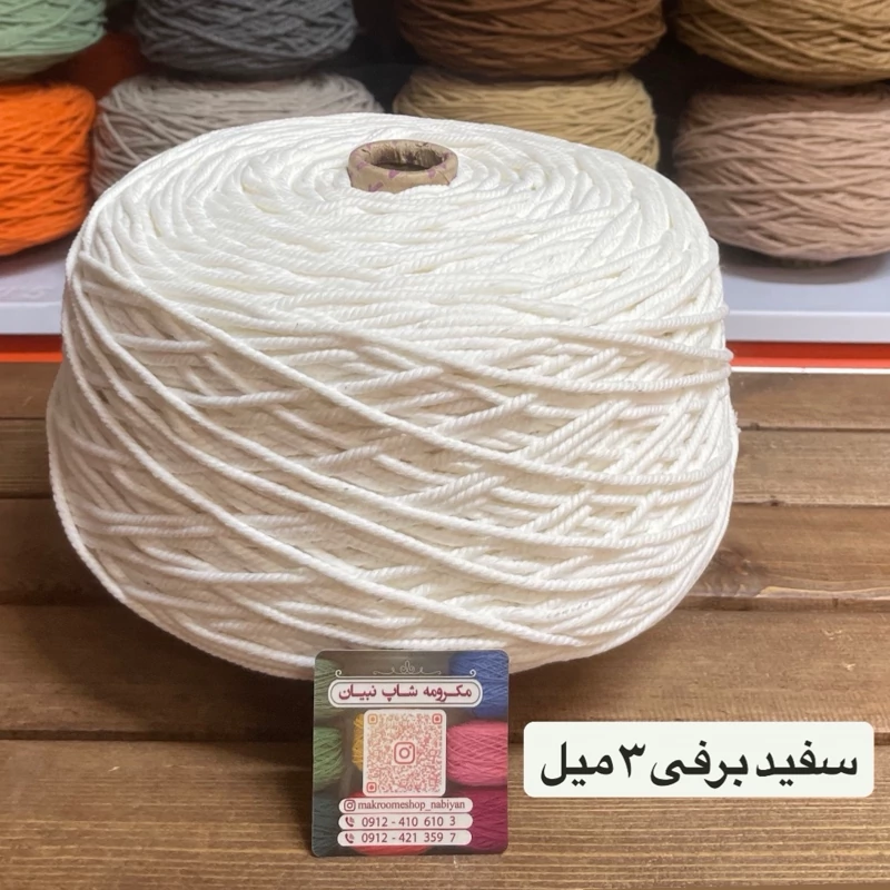 نخ مکرومه بافی سفید و شیری 3میل (1 کیلویی)