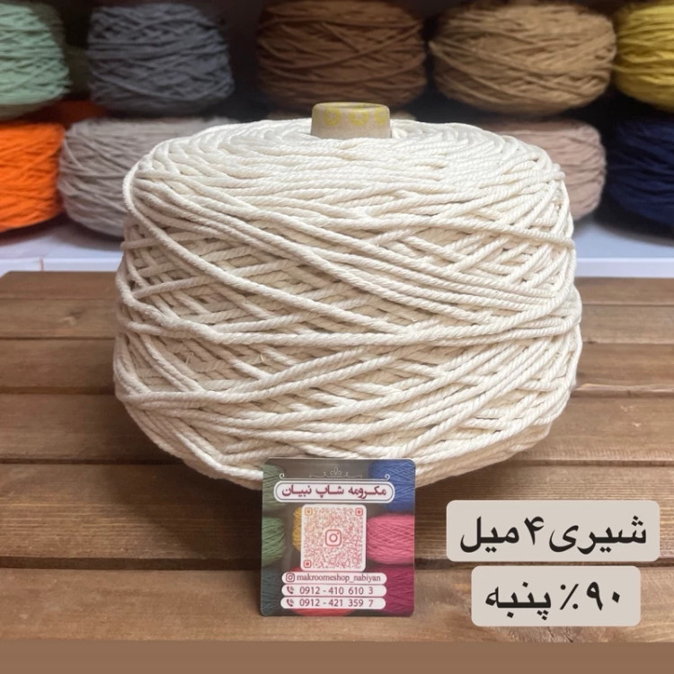 نخ مکرومه بافی سفید و شیری 4میل (150 گرمی)